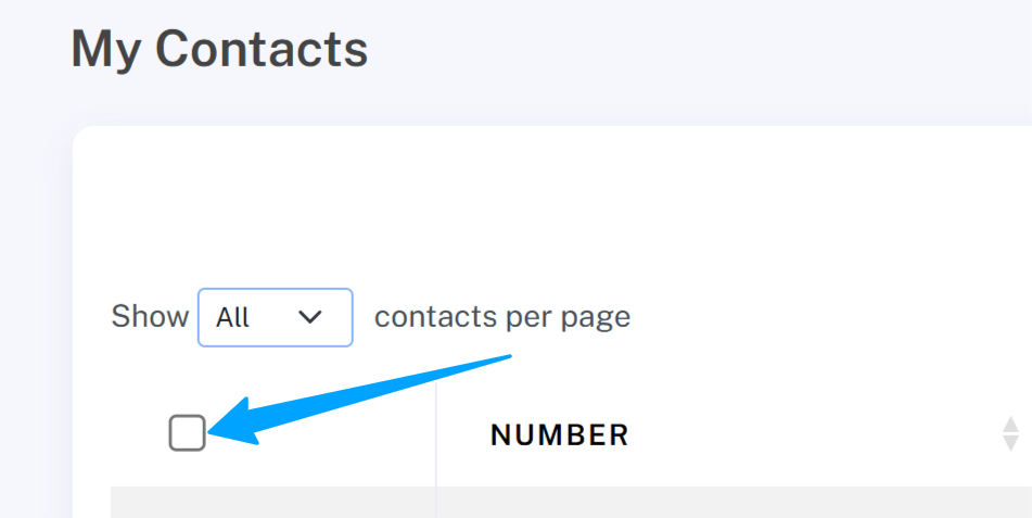 Once all contacts are visible, click the checkbox at the top of the list to select all contacts.