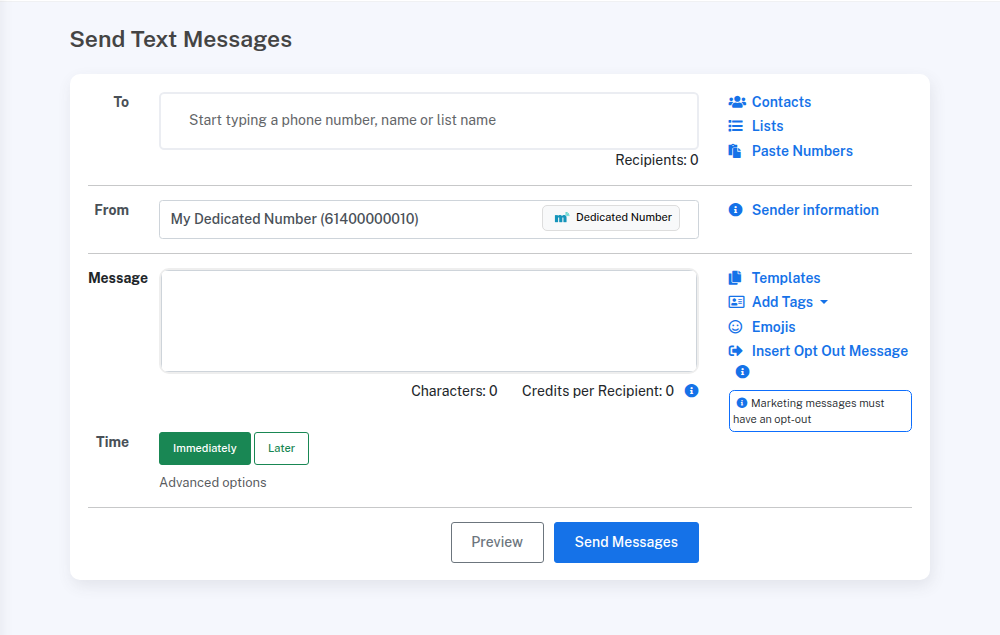 This guide walks you through sending a simple test SMS. It’s the fastest way to confirm your account is set up correctly and understand how sending works.