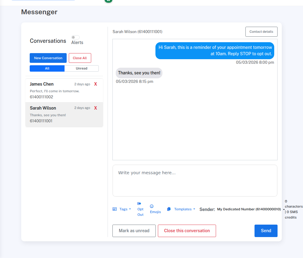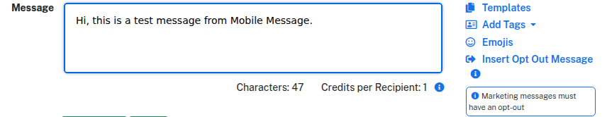 Watch the character counter as you type. Longer messages may be split into multiple SMS parts, which increases the credit cost.