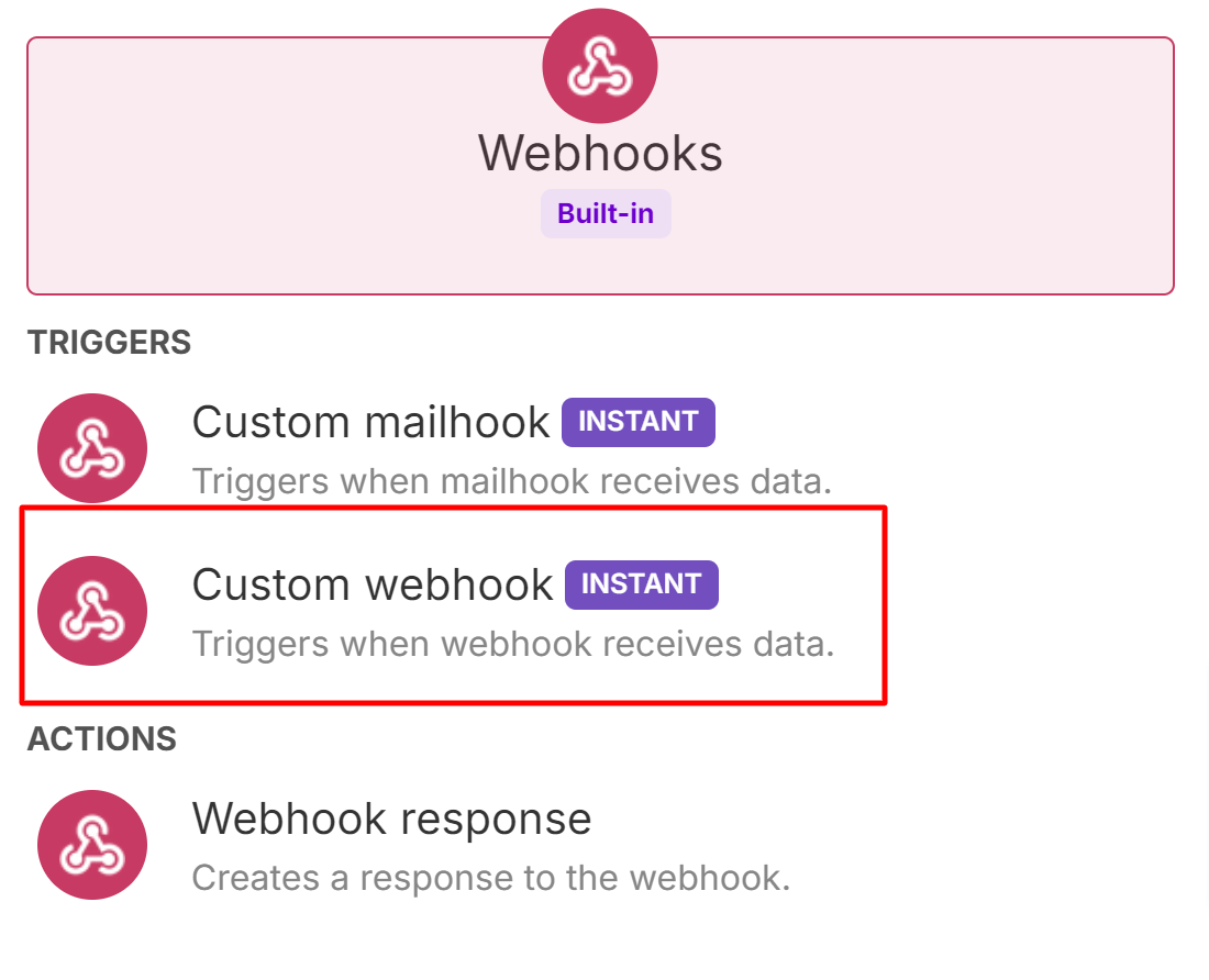 - Select Custom webhook.