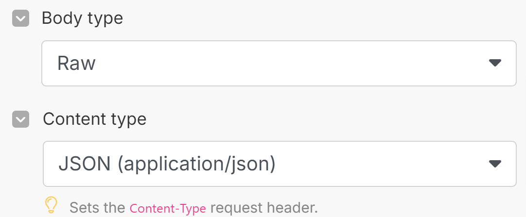 - Set the Content type to JSON.