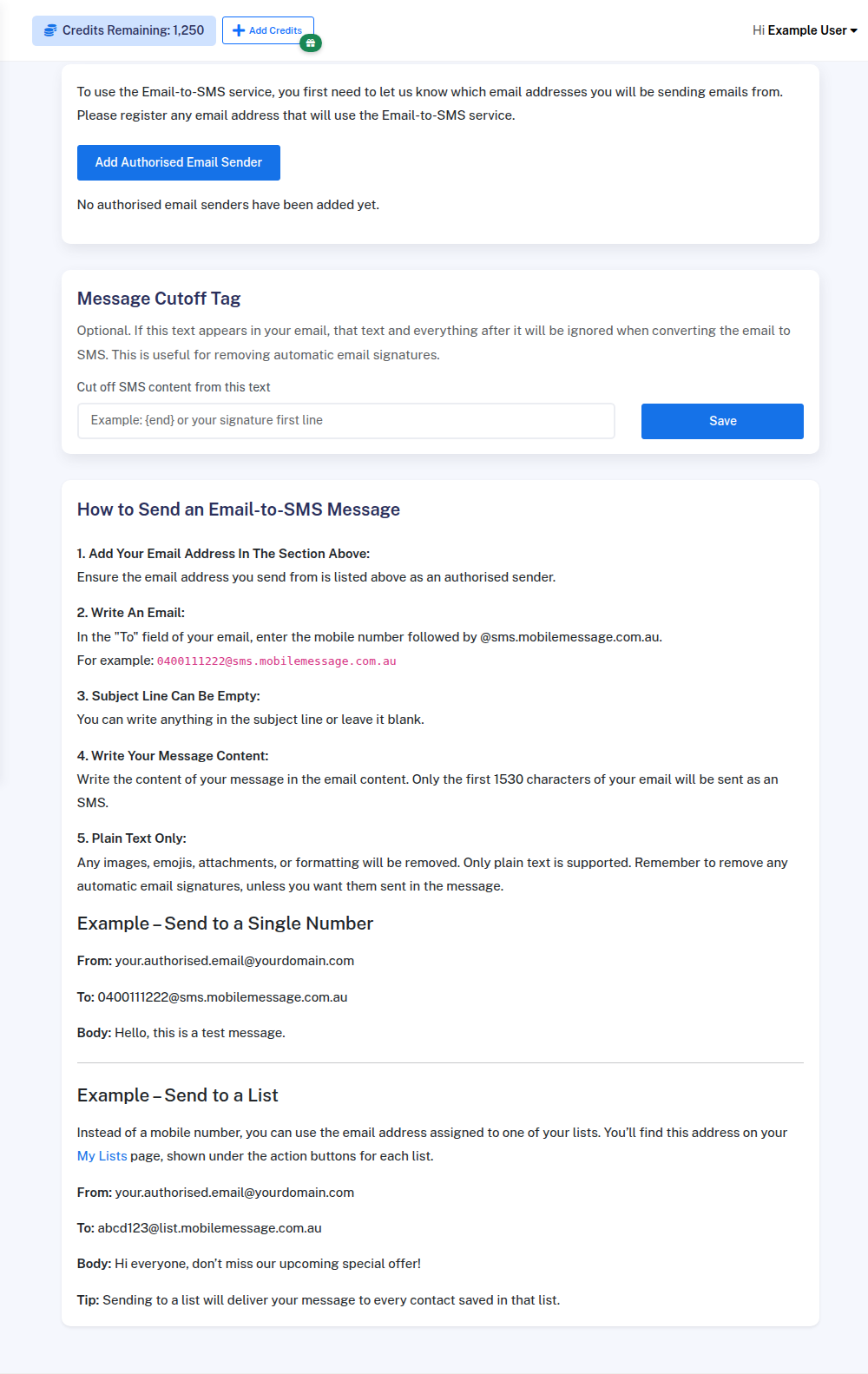 For security and abuse prevention, only authorised email addresses can send Email-to-SMS messages.