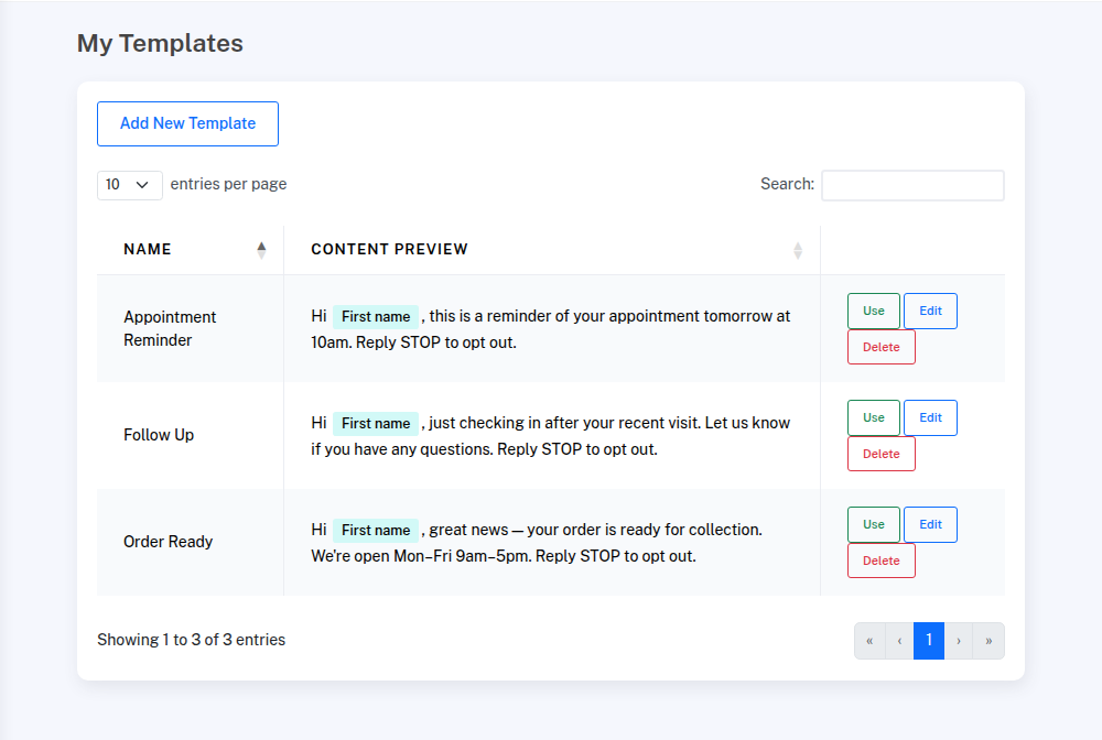 Templates help streamline your workflow while still allowing personalised, professional SMS communication.