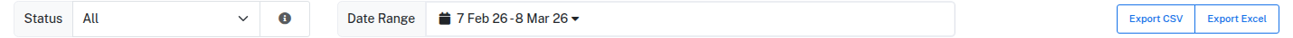 Click Export CSV or Export Excel to download the messages that match your current filters. The export includes all matching records, not just the ones visible on the current page.